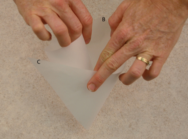 - Cross over corners A and C, making a W. Always keep the point tight so that there is no hole. Secure with a piece of tape if necessary.