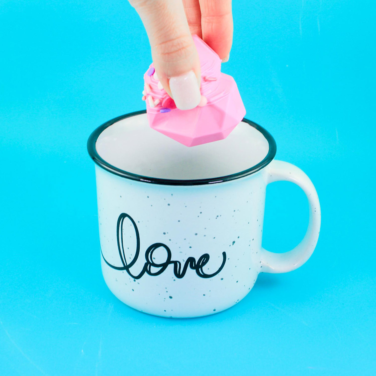 Place hot cocoa bombs on parchment to decorate. Drizzle leftover coating over each heart and immediately top with sprinkles. Your cocoa bombs are now ready to use. Heat 1 to 1 1/2 cups of milk in the microwave until it simmers. Place the hot cocoa bomb in a mug and pour over the hot milk. Stir until all the hot cocoa powder and chocolate dissolves. Enjoy!