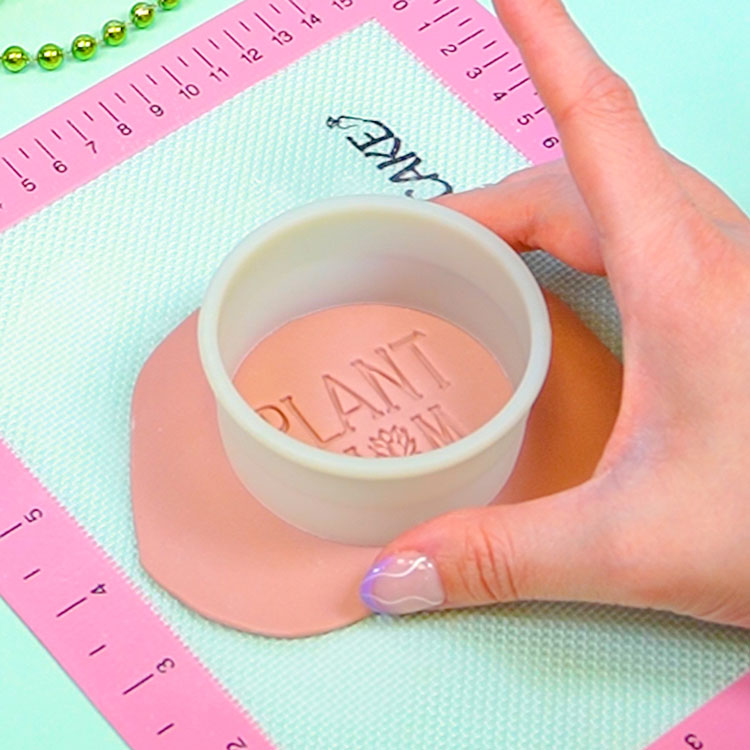 Use our Plant Mom Fondant Stamp to emboss the fondant & cut out using a round cookie cutter.