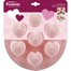 Bake mini cakes and desserts with this silicone pan. The pan has 7 cavities. Pan has a reinforced steel rim for extra stability. Silicone pan bakes evenly and releases baked goods easily. Mold is heat safe up to 428°F.