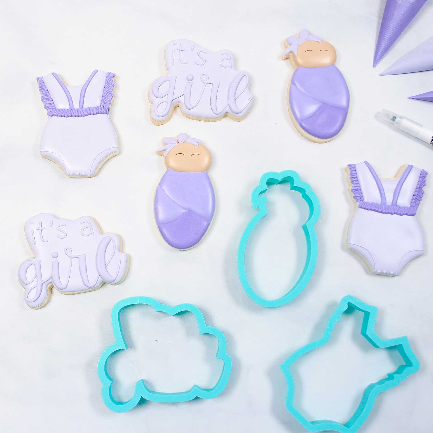 3D printed from food safe, high quality PLA plastic. Printed with a wide grip for easy handling and a sharp cutting edge to ensure crisp edges. Do not submerge in hot water or cut hot cookies with cutter. Wash with gentle detergent in warm water and pat dry.