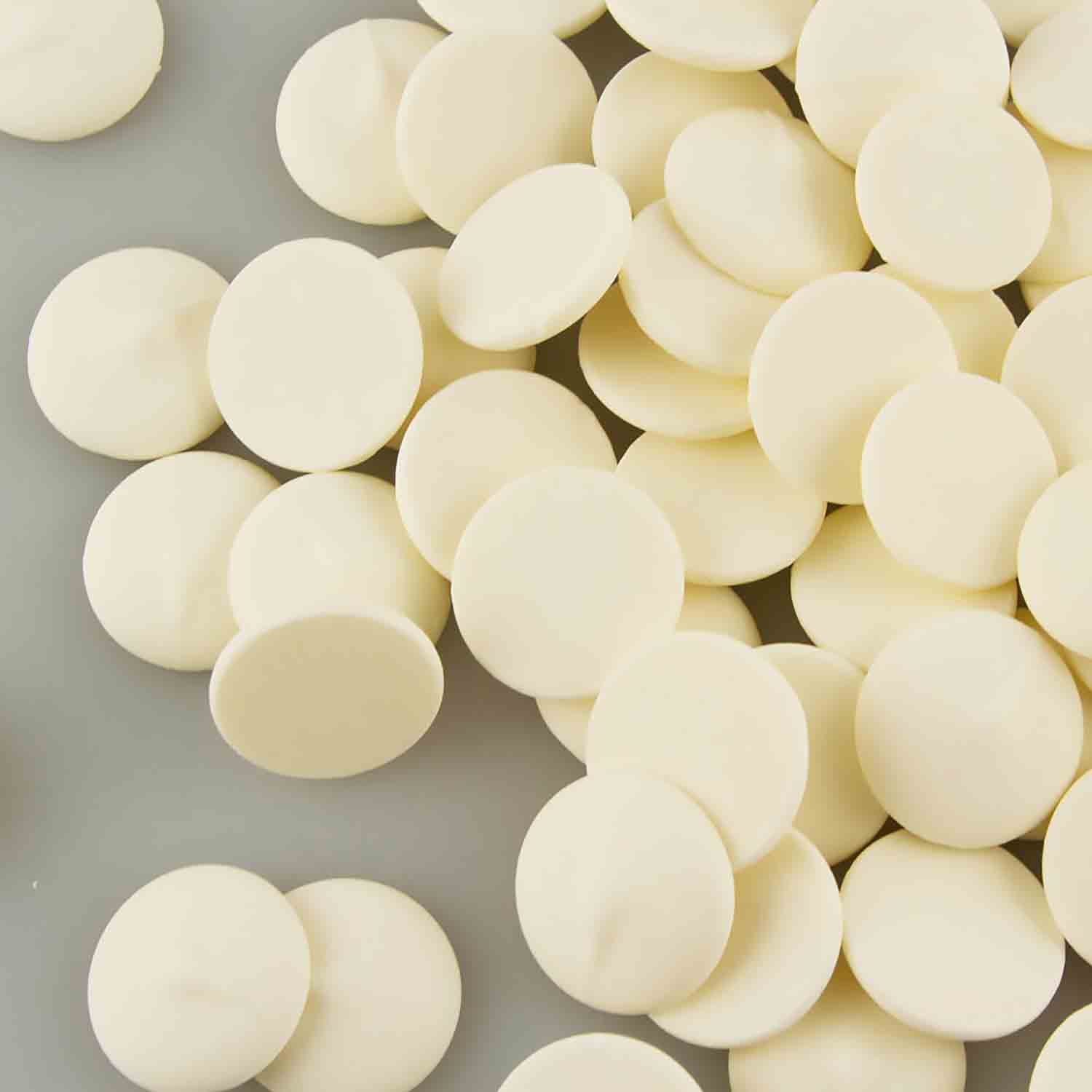 Merckens white chocolate wafers are a delicious, smooth and creamy vanilla-flavored confectionary candy coating with no waxy taste. White chocolate wafers (also known as chocolate melts, candy melts, confectionary coating, and candy coating) combine sugar, milk and vegetable oil and requires no tempering.