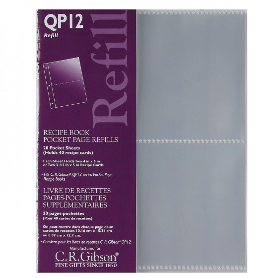 8 ½" x 7"; 20 sheets; each sheet holds 2-4x6 or 2 3x5 recipe cards; refills for the QP12 recipe binders
