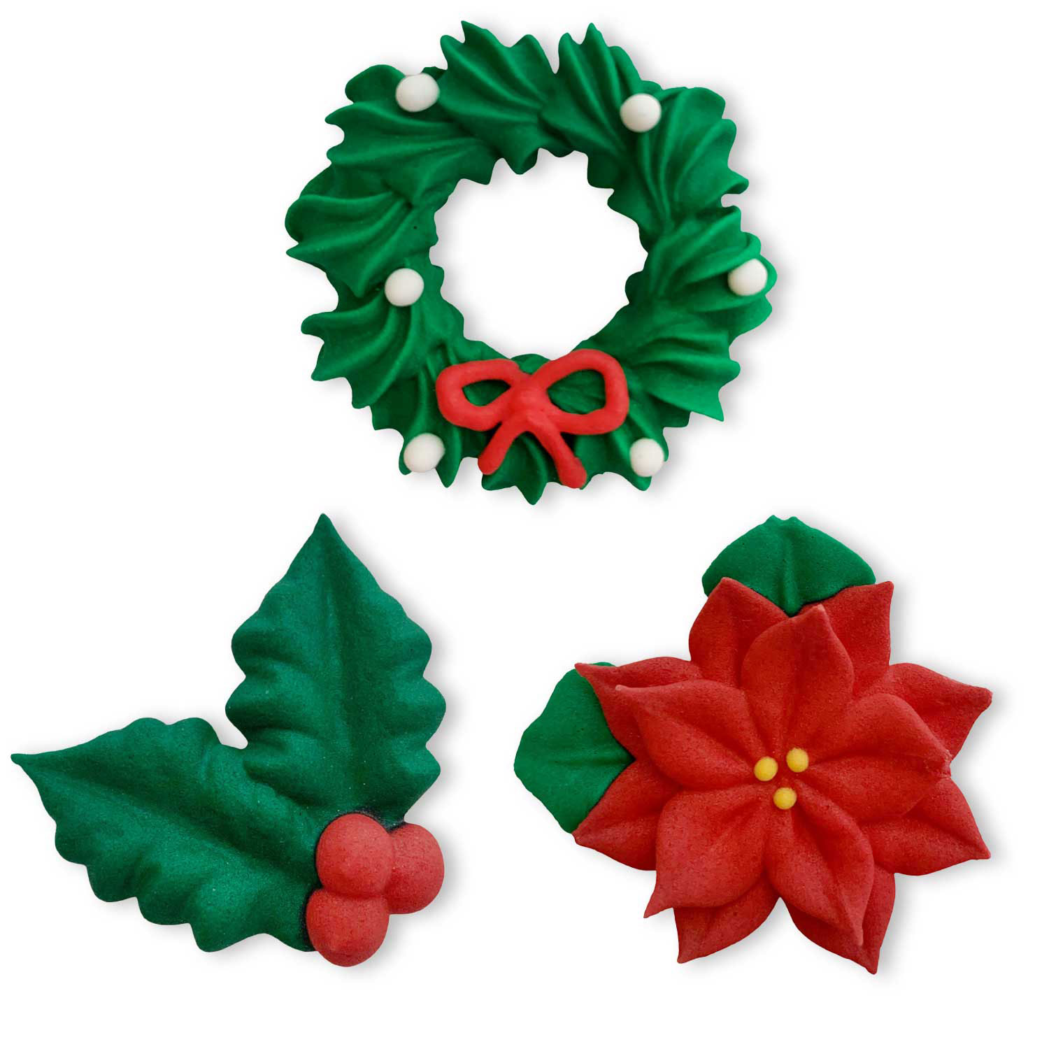 Edible sugar decorations made from royal icing. Add to cupcakes, cookies, cakes, candies, and more. Decorations are handmade. Size and design may vary slightly.