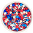 Ingredients: Dextrose, Corn Starch, Sugar, Hydrogenated Palm Oil, Dextrin, Type I-Mica Based Pearlescent Pigments, Magnesium Stearate, Shellac, Carnauba Wax, Gum Arabic, Artificial Flavor, SOY Lecithin, Artificial Colors (FD&C Blue #1, FD&C Yellow #5, FD&C Red #3, FD&C Red #40, FD&C Blue #2)