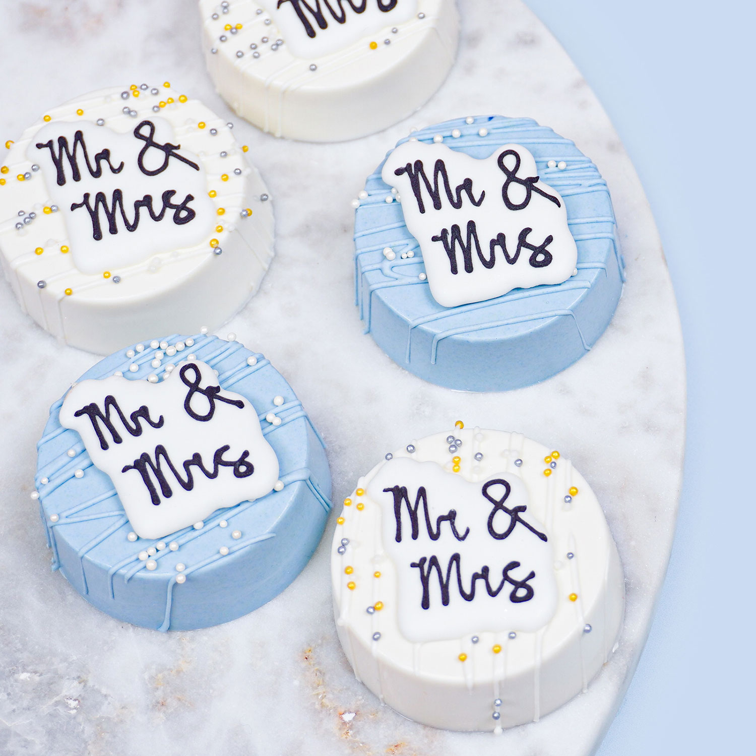 These edible Mr and Mrs sugar decorations make wedding decorating easy. Use them as cupcake toppers or add to cookies, cakes, candies, and more. Decorations are hand made. Size may vary.