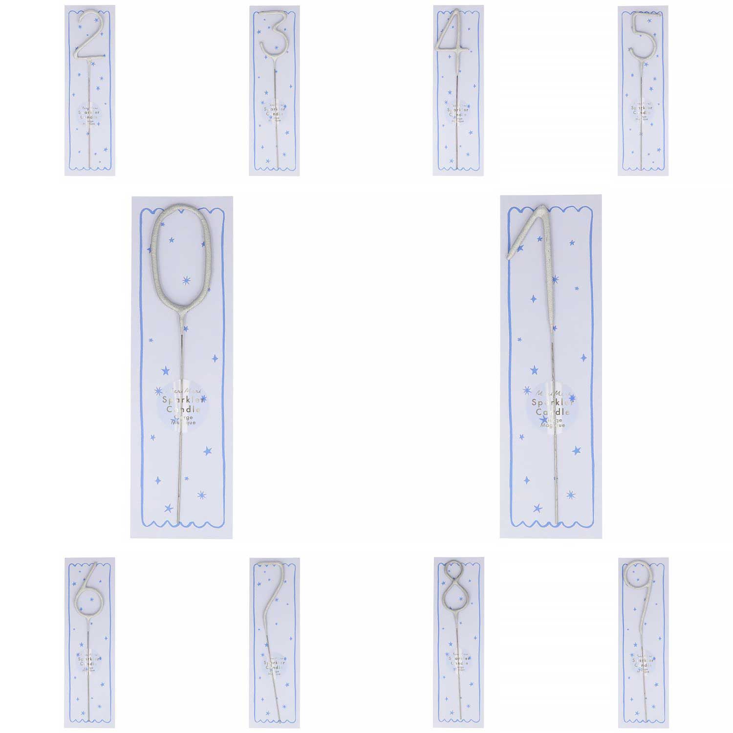 Sparkler candles are a fun way to light up any cake. Number shape is coated in metallic silver. Recommended for outdoor use only.